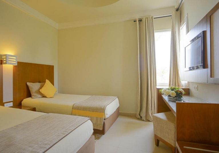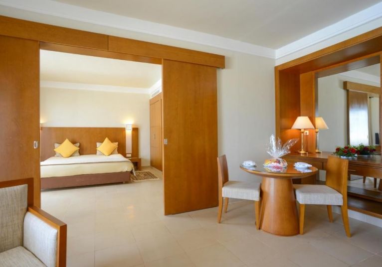 Menzel Family Room - Комфортно обзаведена и просторна с изглед към басейна или морето, семейната стая Менцел (42 м2) разполага с 2 отделни спални с плъзгаща се врата с капацитет за 4 души, баня и тоалетна, което я прави идеална за семейства или възрастни, които ценят комфорта и пространството. Оборудвана е със сейф, сешоар, минибар, телефон с директно избиране, сателитна телевизия, тераса / балкон, климатик, отопление, пакет за добре дошли и отлично почистване.