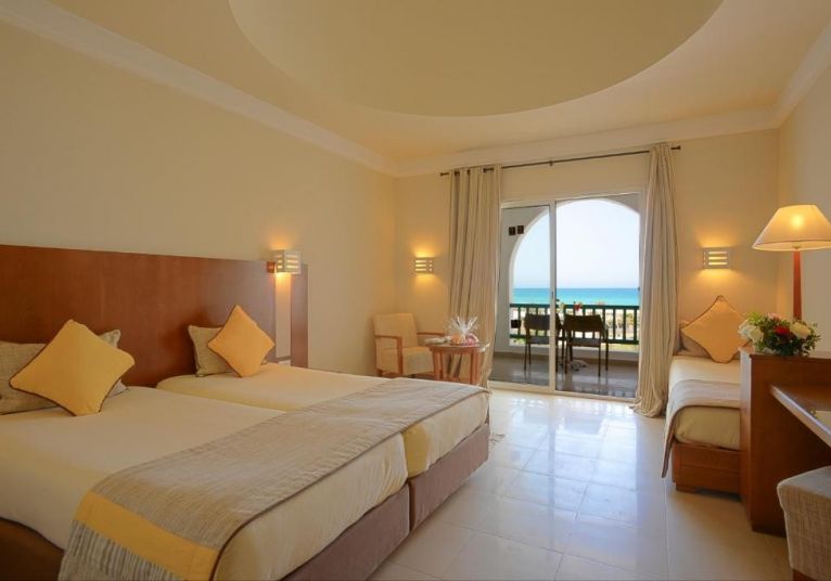 Menzel Room - Комфортно обзаведена с изглед към басейна или морето, стаята Менцел разполага със спалня с капацитет от 2 до 3 души, баня и тоалетна, което я прави идеална за семейства или възрастни, които ценят комфорта. Оборудвана е със сейф, сешоар, минибар, телефон с директно избиране, сателитна телевизия, тераса / балкон, климатик, отопление, пакет за добре дошли и отлично почистване.