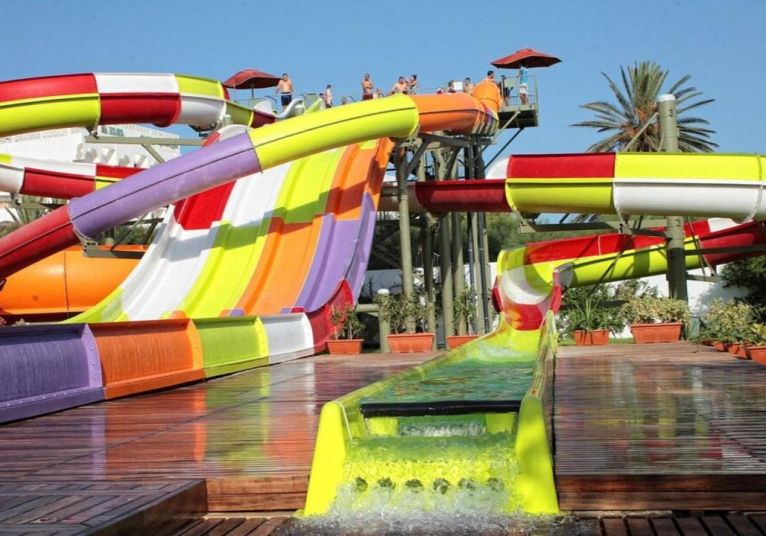 All Inclusive, няколко басейна, собствен аквапарк с водни пързалки, богата анимация, спортни терени и директен достъп до плажа. Хотелът е подходящ за семейства, особено с деца.