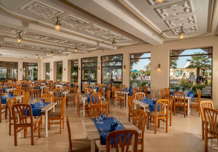 Основен ресторант The Kitchen с детски бюфет, а ла карт ресторант The Gourmet с тунизийска кухня (отворен 4-6 пъти в седмицата, след предварителна резервация), а ла карт ресторант The Sacré Bistro със средиземноморска кухня (отворен 4-6 пъти в седмицата от юни до октомври, след предварителна резервация), снак ресторант The Sacré Bistro (от май до октомври), лоби бар The Bourbon, бар до басейна и плажа The Blue (от май до октомври), лаундж бар The Kano Beac (срещу заплащане), мавританско кафене The Arabica, 3 открити басейна, 3 пързалки, вътрешен отопляем басейн (отоплява се от ноември до април), 3 тенис корта, СПА център, магазини, конферентни зали, анимация, денонощна рецепция, обмяна на валута.