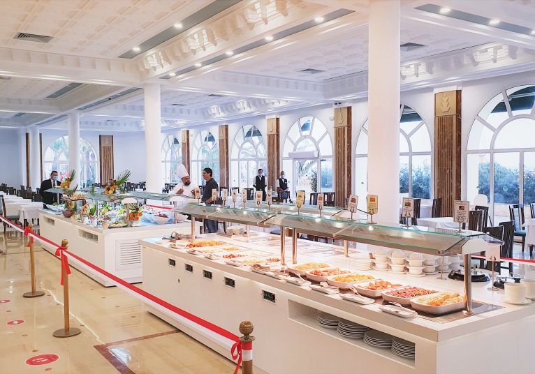 Основен ресторант Le Corail, а ла карт ресторант (срещу заплащане, 1 безплатно посещение на престой, след предварителна резервация), барбекю ресторант L’Esplanade (01.06-30.09), лоби бар Carthage, бар басейн (01.06-30.09), американски бар Bacchus (срещу заплащане), плажен бар (01.06-30.09), мавританско кафене Mosaique (срещу заплащане), открит басейн, закрит басейн с морска вода в Таласо центъра (срещу заплащане), анимация, конферентна зала, денонощна рецепция, обмяна на валута.