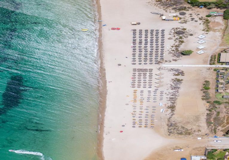 - Шезлонги, чадъри и кърпи на плажа и при басейна