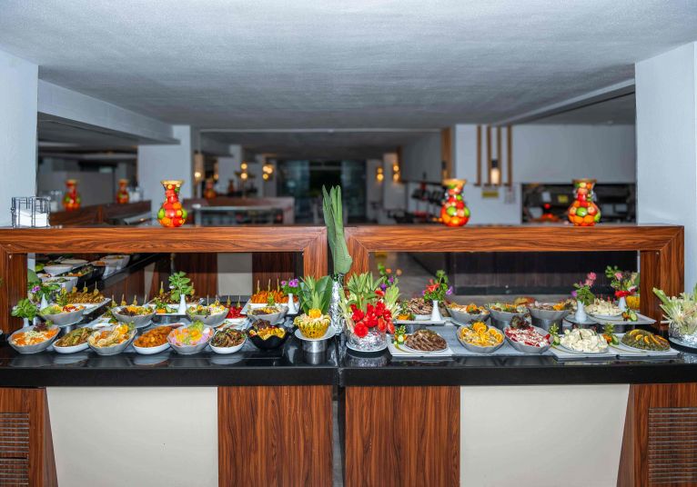 All Inclusive: Закуска, късна закуска, обяд, снек, вечеря на шведска маса, нощна супа - в основния ресторант на хотела; местни алкохолни и безалкохолни напитки – без лимит. Диетично и детско меню.