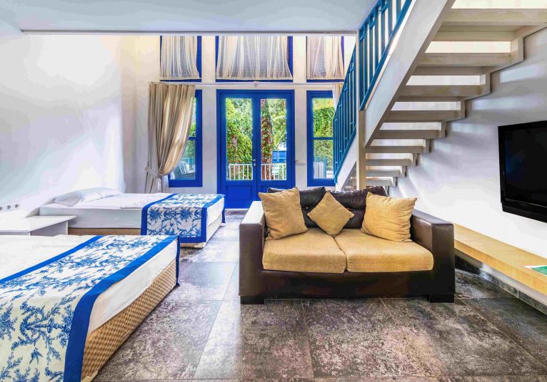 Хотелът разполага с общо 196 стаи, разположени в 11 блока , от които 28 Economy room – разположени на сутерен (17 m²), – 131 Standard room (20 m²), 29 Bunkbed room (22 m²),8 Dublex room. Всички стаи са оборудвани с климатик, LCD телевизор със сателитни канали, телефон с директно избиране, баня с душ, сешоар, мини-бар (с безалкохолни напитки), комплект за чай/ кафе, будоар, тоалетка с огледало, сейф (платен), балкон или тераса. Почти всички помещения са с ламинат/ паркет. Икономичните стаи са с фаянс и са разположени на сутерен. Почистване на стаите - всеки ден, смяна на спално бельо – 3 пъти в седмицата.
