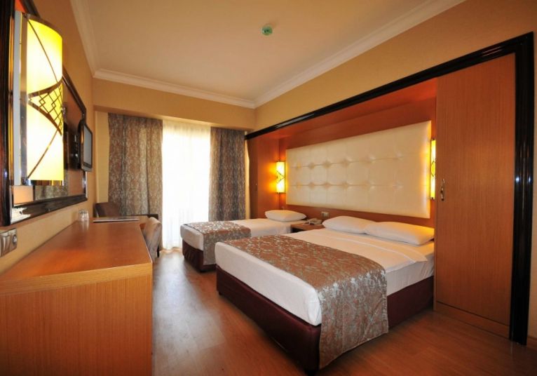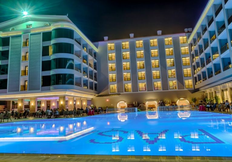 Основен ресторант, 4 бара, дискотека, 2 открити и 1 закрит басейн, водни пързалки, магазини, СПА център, паркинг. За децата: 2 детски басейна, водни пързалки, детска площадка. Безплатни услуги: Сауна, турска баня, фитнес, аеробика, тенис на маса, анимация, WI-FI интернет в лоби. Платени услуги: СПА център, масаж, пилинг, фризьор, детегледачка, магазини, пералня, химическо чистене, лекар, интернет кафе, билярд, моторни водни спортове. ПЛАЖ: Собствен, пясъчен – чадъри и шезлонги на плажа и при басейна – безплатно, плажни кърпи - безплатно.
