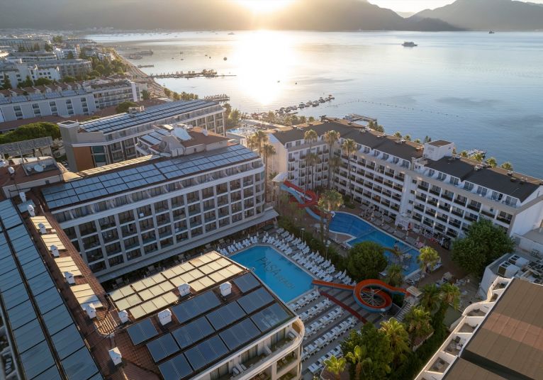 Хотелът се намира на 120 км. от летище Милас, на 99км от летище Даламан, на 3 км. от центъра на Мармарис, на брега на морето. Построен през 1995 г. (блок „А“) и 1998 г. (блок „Б“) с обща площ от 9 000 м2, последно реновиран през 2009 г. (блок „А“) и 2013 г. (блок „Б“).