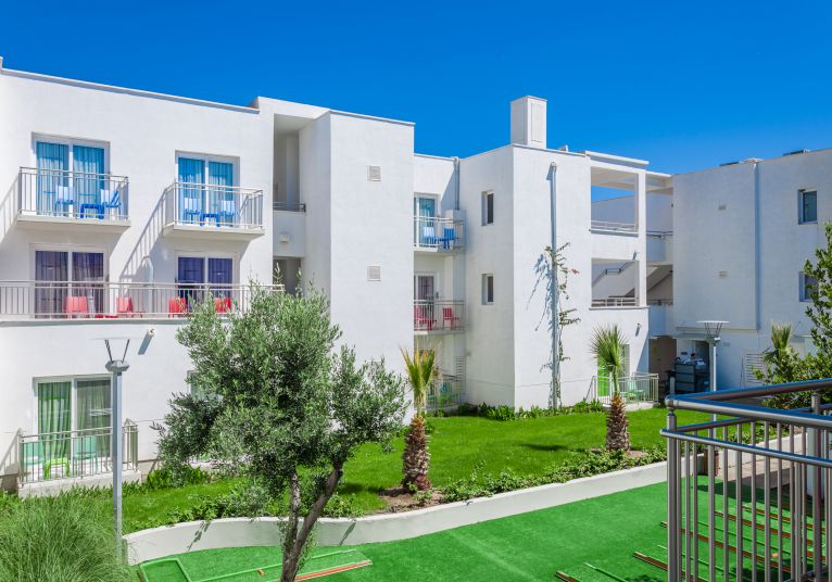 Хотелът разполага общо с 381 стаи в двуетажни сгради, от които 302 Standard Room (20 m², разполагат с френско легло или две единични), 48 Large room (26 m², с френско легло и двуетажно легло), 8 Deluxe Room (22 m² спалня с джакузи), 5 Deluxe Suite (46 m² с една спалня и една дневна), 12 Junior Suite (32 m² с една спалня и една дневна), 2 Oval Suite (45 m² с легло в овална форма и джакузи в същата).