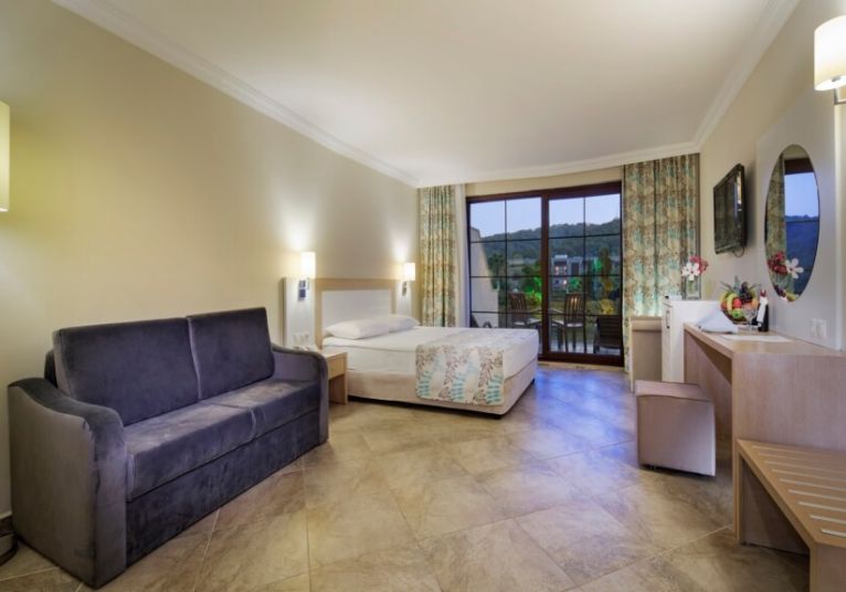 Стаи Land View room (спалня, баня, с изглед суша - 20 м²), Large room land view (1 спалня с две легла, 1 баня, изглед суша - 23 м²) Standard room side sea view (1 спалня с две легла, 1 баня, със страничен изглед море - 23 м²), Room with bunkbed (1 спалня, 1 двуетажно легло, 1 баня, изглед суша - 23 м²), Fаmily Room Land View (2 спални, 1 баня, изглед суша, в отделен корпус - 34 м²), Family room with bunkbed (2 спални с двуетажно легло, 1 баня, изглед суша, в отделен корпус - 34 м²).