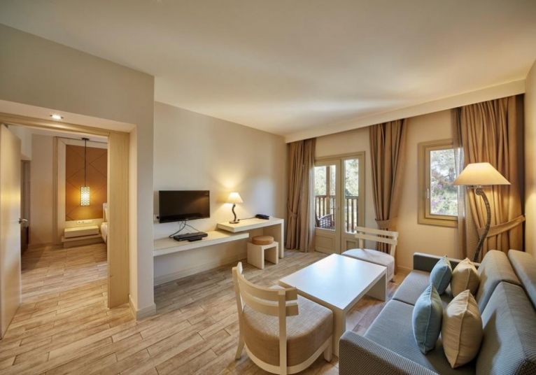 Хотелът разполага с общо 285 стаи,  разположени в 3-етажни къщички. Стаи Standard Room Garden View (спалня, баня, с изглед градина - 31 м²), Sea view room (спалня, баня, с изглед море - 31 м²), Family garden room (2 спални, 2 бани, с изглед градина - 62 м²), Family room sea view (2 спални, 2 бани, с изглед море - 62 м²).