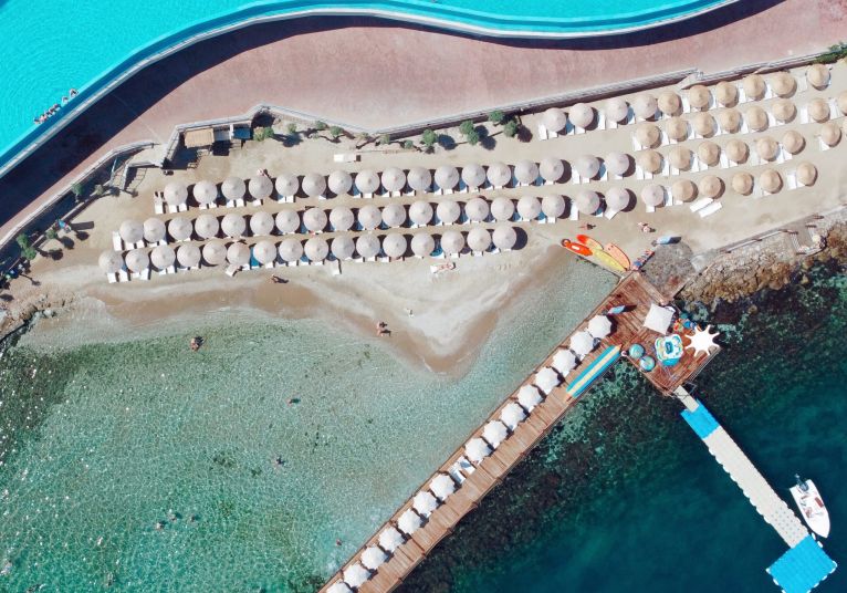 Намира се на 23 км от летище Бодрум, на 10 км от центъра на Бодрум, в района на Торба, на брега на морето. Построен 1996 г., на обща площ от 55 000 м².Основна реновация 2015. Частично реновиран 2022 г.
