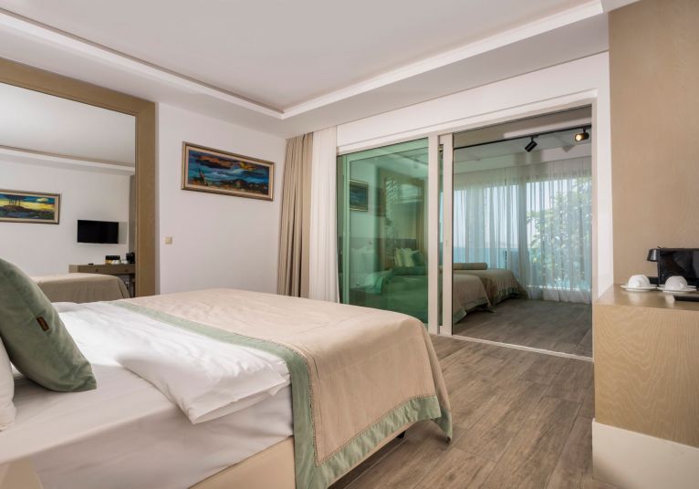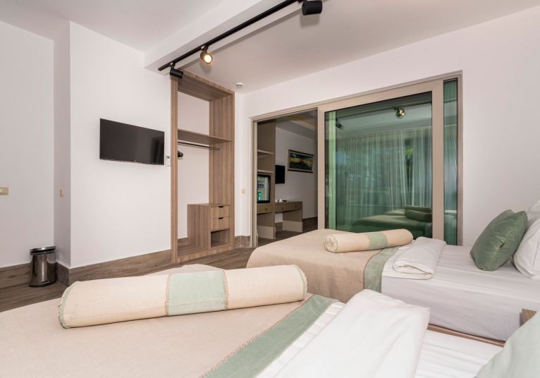 Хотелът разполага с общо 341 стаи, от които 217 Club Rooom разположени в 2-етажни къщички и Deluxe Room в основна сграда. Стаи Club Room (спалня, баня, изглед суша - 20 м²), Club Room Sea View (спалня, баня,с изглед море - 20 м²), Family Club Room Land View (2 спални,1 баня, с изглед суша - 35 м²), Deluxe Room Sea View (спалня, баня, с изглед море - 35-40 м²), Deluxe Family Room Sea View (2 спални, 1 баня, с изглед море - 55 м²).