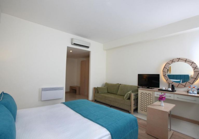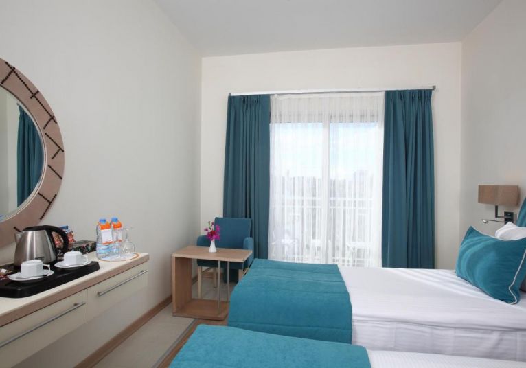 Хотелът разполага с общо 181 стаи, разположени в 3-етажни сгради. Standard room (18 м²), Family room (22 м²).