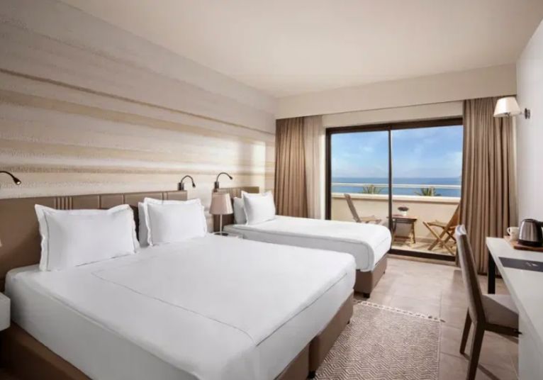 Стаи Land View (спалня, баня, с изглед суша - 30 м²), Sea View Room (спални, баня, с изглед море - 30 м²), Select Room Sea View (1 спалня, 1 баня, с изглед море - 30 м²), Family Room Sea View (2 спални, 1 баня, с изглед море - 45 м²), Family Select Sea View (2 спални, 1 баня, с изглед море - 40 м²).