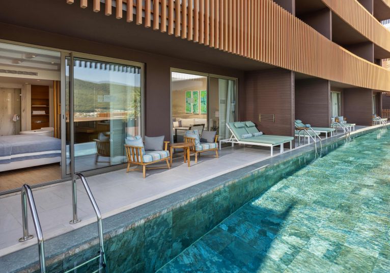 Хотелът разполага с общо 394 стаи, разпределени в 29 три-етажни блока, от които Sea view room (с изглед към море, 39 - 47 м²), Superior room (51 м²), Deluxe room (спалня със зона за сядане, баня - 80-85 м²), Family Room (1 спалня, отделна стая с 2 легла, 2 бани - 54 м²), Standard swim-up room (с директен достъп до общ басейн, тераса с два шезлонга - 39 м²), Superior swim-up room (с директен достъп до общ басейн, тераса с два шезлонга - 51 м²), Swim Up Family Room (2 спални, 2 бани, с директен достъп до общ басейн, тераса с два шезлонга - 54 м²), Deluxe Swim Up Room (с директен достъп до общ басейн, тераса с два шезлонга, 1 спалня със зона за сядане, баня с вана и отделна душ кабина, 80-85 м²), Exclusive Swim Up (с директен достъп до общ инфинити басейн, спалня, баня с вана и отделна душ кабина, гардеробна зона, тераса с два шезлонга и джакузи; премиум услуги, закуска в ресторантите Hasır и Pascarella, ексклузивен минибар, безплатен румсървис, безплатни перални услуги, при минимум 7 нощувки, частна плажна кабана, личен иконом (butler service), частно бъги с иконом, кожен ключодържател и плажна чанта - 90 м²), Family Suite (фамилна стая суит, хол, кухненски бокс, спалня, детска спалня с 2 единични легла, 2 отделни бани, тоалетна, кът за сядане, работно бюро и балкон - 90 м²), Family Suite Room Swim Up (фамилна стая суит, директен достъп до басейна, 1 спалня, 1 отделен хол, 2 бани, кухненски бокс - 90 м²), Exclusive Villa (вила на 2 етажа, на 1 етаж има всекидневна, спалня и баня, 2 етаж две спални и две бани, 1 тераса и собствен басейн, всички спални имат балкон, по-богато разнообразие в мини бара, иконом), Superior Villa (3-етажна вила, кухня, всекидневна, сауна и баня на първия етаж, 4 спални на 2 етаж, тераси и собствен басейн, джакузи, маса за вечеря, богато разнообразие в мини бара, иконом - 300 м²), Presidental Villa (3-етажна вила, разположена в градините на хотела, кухня, всекидневна, хамам, сауна на първия етаж, 6 спални, турска баня, собствен басейн, сауна, асансьор, иконом - 530 м²).
