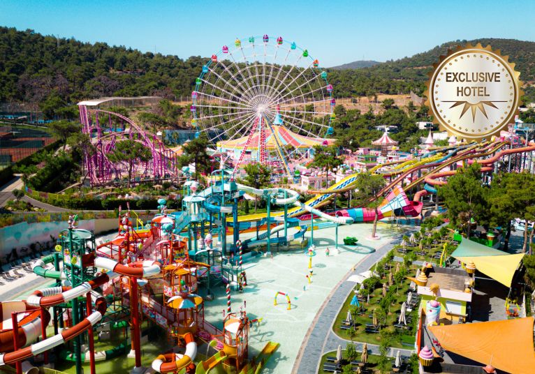 CANDYTOWN LUNA PARK е мястото за неверятно забавления по време на Вашия престой. Паркът представлява комплекс от различни забавления за всички възрасти. Разбира се, не трябва да пропускат и Лунапарка с 9 различни атракции включително виенско колело високо 17 метра, както и детска въртележка, картинг, лабиринт с лазер игри, детско влакче на ужасите и 8D кино. Има мини клуб за деца между 4 и 7 годишна възраст, който може да предложи на малките посетители детски фитнес, арт занимания, мини диско, игрална площадка, детска йога и безброй други забавления. За малко по-големите (на възраст между 8 и 12 години) в макси клуб се предлага търсене на съкровища, оригами, баскетбол, волейбол, водно поло, сумо игри, рали, футбол и още други. Тийнейджърите в хотела могат да посетят предвидения за тях клуб, в който играят тенис на маса, футбол, дартс, търсене на съкровища, игрална зала (playstation 5 и компютърни игри), бинго, баскетбол, кино, уроци и много други. Дино парк с 12 динозаври в реални размери. Най-новите атракциони са тематичния парк Candyland и виенското колело. Работно време в периода 01.05-15.10 от 20.00 до 23:00 (може да варират спрямо метеорологичните условия).