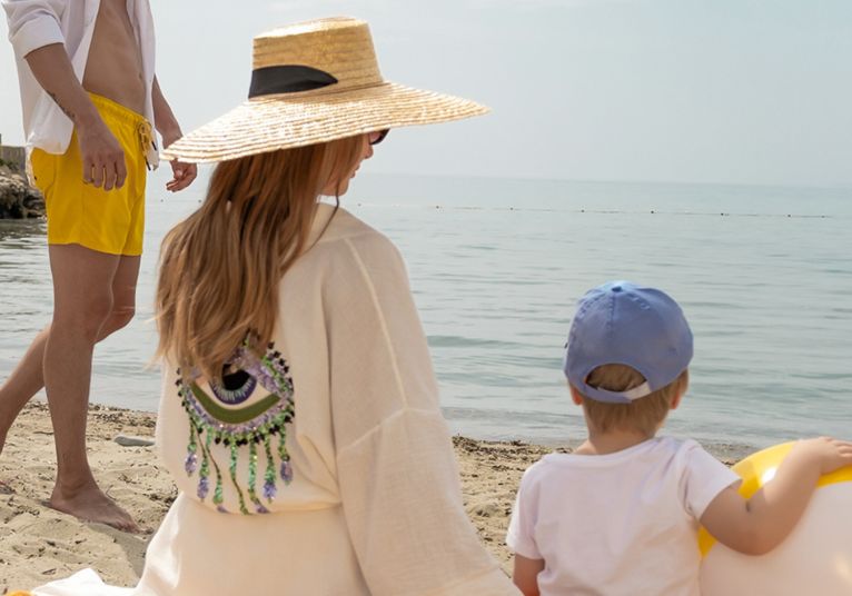 Собствен, пясъчен, притежаващ сертификат "Син флаг" (дължина 200 м), на 50 м от хотела (преминаване през подлез на хотела).Чадъри, шезлонги, матраци и плажни кърпи на плажа и при басейна – безплатно. Бар на плажа от 09:00 до 17:30 часа (безплатни топли и студени напитки, бира).