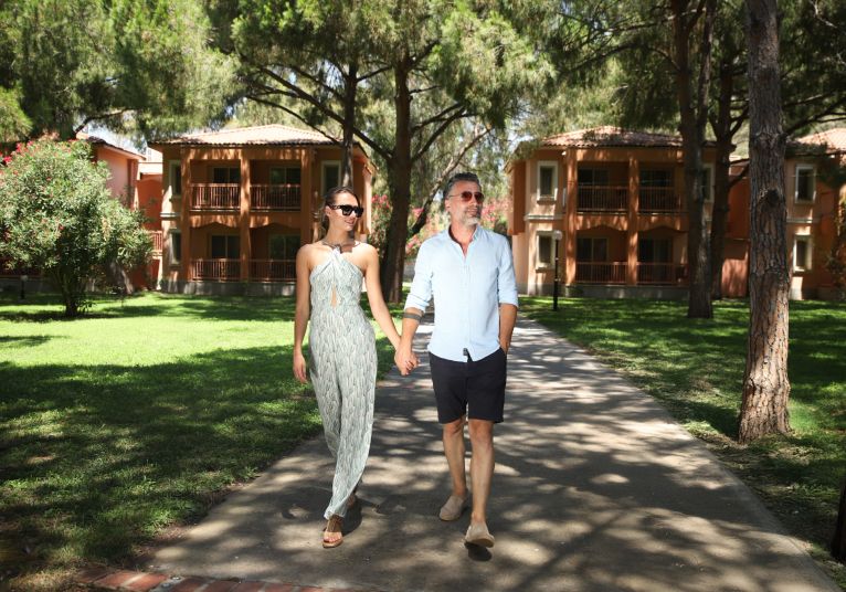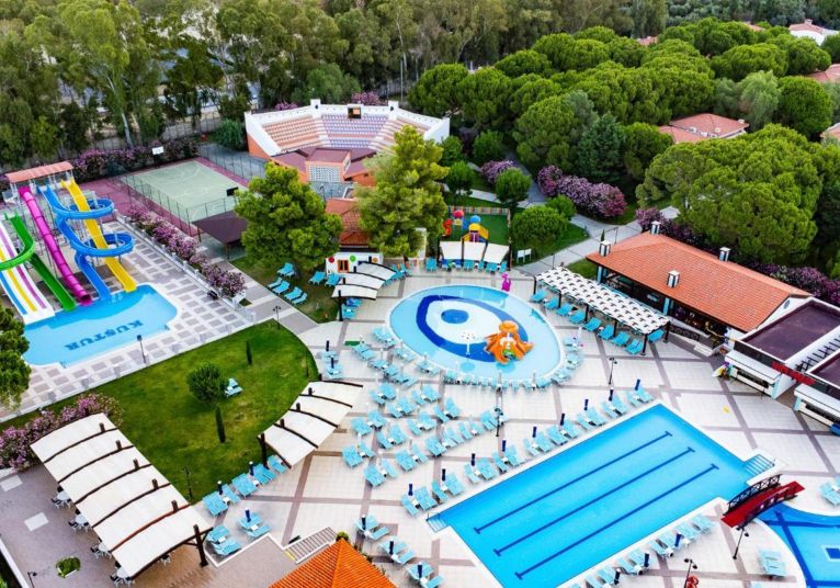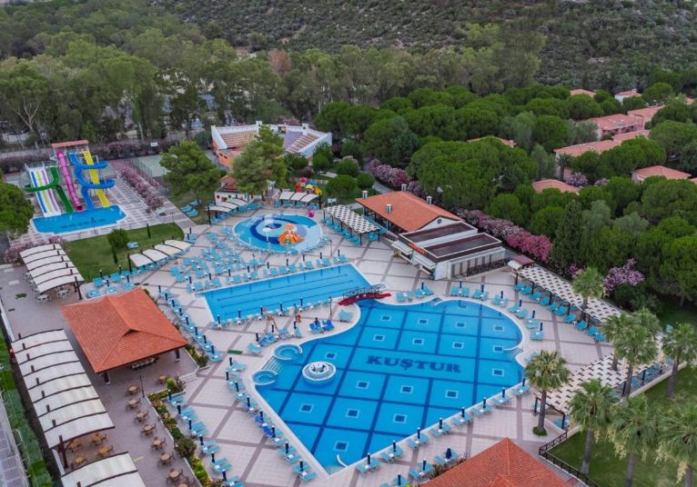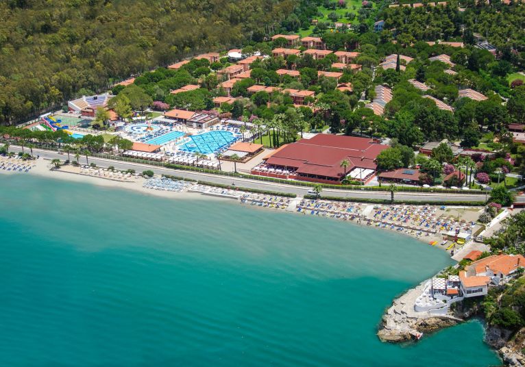 Намира се на 70 км от летище Измир,  на 130 км от летище Милас, на 4 км от центъра на Кушадасъ, на 50 м от брега на морето. Построен през 1998 г., поетапно разширяван в периода 2004-2008 г., с обща площ 170 000 м², където тюркоазено синьото на Егейско море се слива с огромна гора от борови дървета с красиви цветя. BUNGALOW GARDEN ROOMS са реновирани през 2014 г.,  SUPERIOR ROOMS са реновирани през 2021 г. , FAMILY ROOMS през 2022 г.
