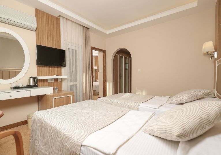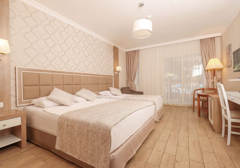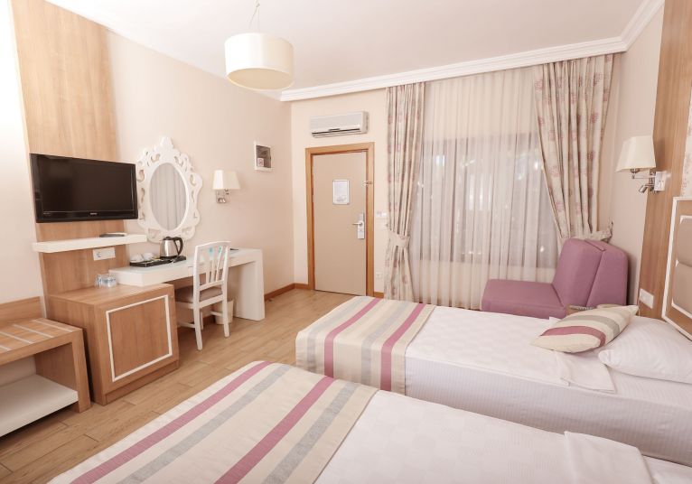 Всички стаи са оборудвани с климатик, телевизор, телефон, баня с душ/вана, сешоар, минибар (безплатно зареждане с вода и безалкохолни напитки ), сет за чай/кафе, сейф (безплатен), балкон или веранда. Почистване на стаите - всеки ден, смяна на  спалното бельо и кърпите - 3 пъти в седмицата.