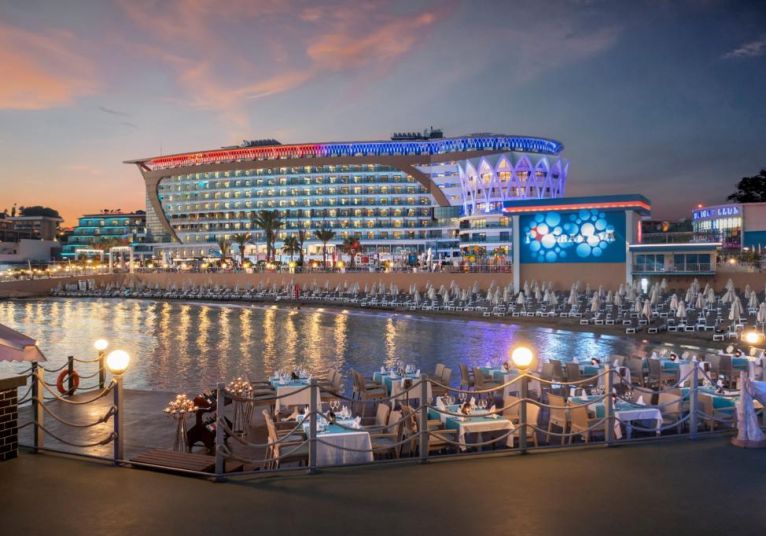 Основен ресторант, 6 а-ла-карт ресторанта (срещу заплащане), сладкарница, 7 бара, дискотека, 3 открити и 1 закрит басейн, 3 водни пързалки, СПА център, магазини, 2 конферентни зали. ЗА ДЕЦАТА: Открит и закрит детски басейн, мини клуб (4-12г.), детска анимация, мини кино, мини диско. БЕЗПЛАТНИ УСЛУГИ: Сауна, турска баня, парна баня, фитнес, аеробика, тенис на маса, 2 тенис корта, дартс, боча, анимация, жива музика, тематични партита, Wi-Fi (в Лоби). ПЛАТЕНИ УСЛУГИ: Масаж, пилинг, фризьор, химическо чистене, лекар, детегледачка, осветление за тенис корт, билярд, боулинг, наем на велосипеди, водни спортове, интернет кафе, рент - а кар. ПЛАЖ: Собствен, платформа (4500 m2). Чадъри, шезлонги и матраци на плажа и при басейна - безплатно. Плажни кърпи – срещу депозит.