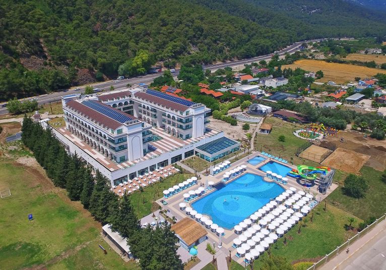 Намира се на 45 км от летище Анталия, на 35 км от центъра на Анталия, на 10 км от центъра на Кемер, на 50 м. от брега на морето (през път). Построен 2017 г., на обща площ от 30 000 м2.