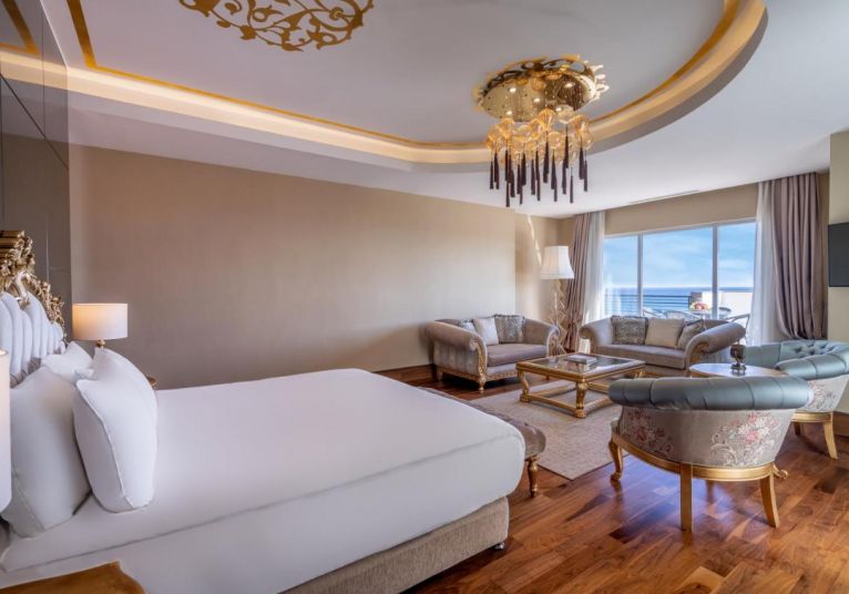 Основен ресторант, 4 а-ла-карт ресторанта(с предварителна резервация), 4 бара, 2 конферентни зали, 1 открит басейн, 1 закрит басейн, 3 водни пързалки, 2 тенис корта, център за таласотерапия, салон за красота, СПА център За децата: мини клуб (4-12 г.), детегледачка (доп.заплащане), детска площадка. Безплатни услуги: турска баня, фитнес център, анимация, закрит басейн Платени услуги: фризьор, масаж, салон за красота Плаж: Собствен чакълест. Чадъри, шезлонги, матраци и плажни кърпи - безплатни.