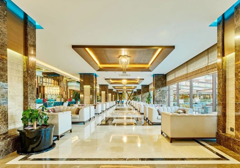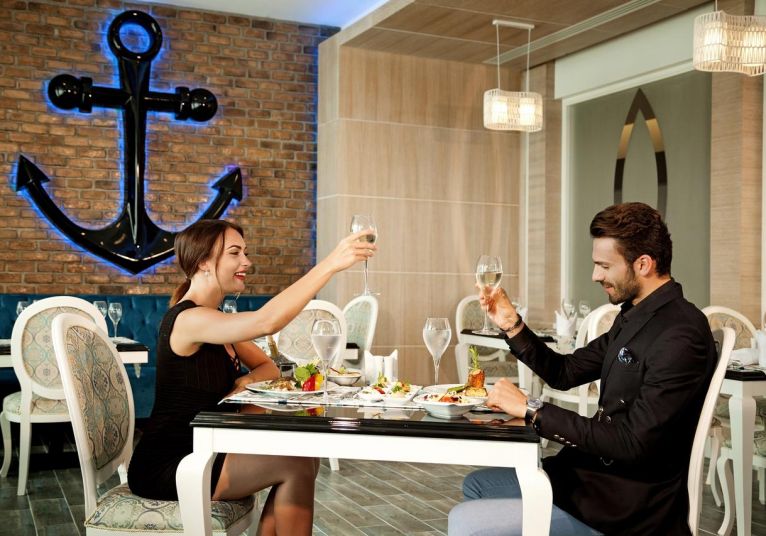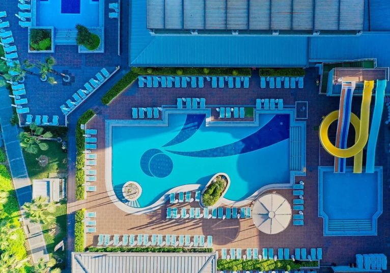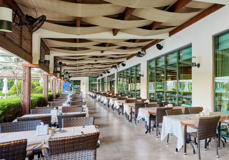 Основен ресторант, 2 а-ла-карт ресторанта (италиански, средиземноморски–1 безплатно посещение на 1 от ресторантите при минимум 7 нощувки), сладкарница, 3 бара (1 от които 24 часа), 3 открити и 1 закрит басейн, 3 водни пързалки, СПА център, магазини, конферентна зала, паркинг.