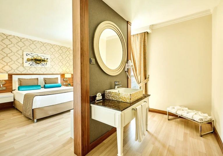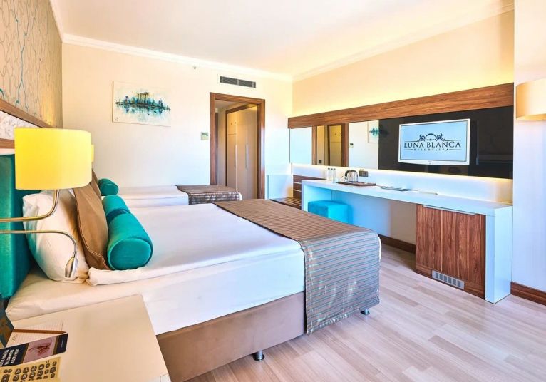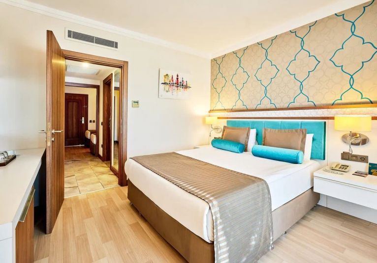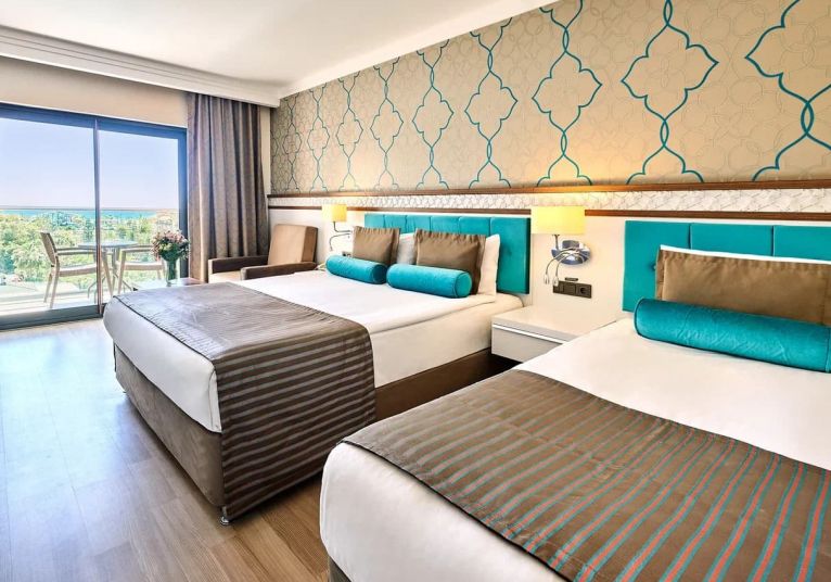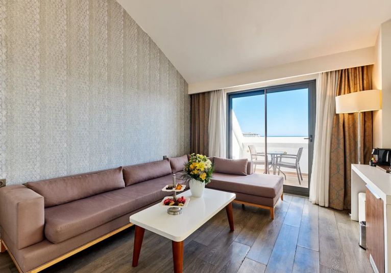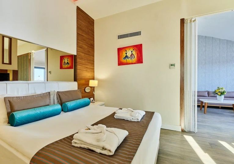 93  Standard  Land Side room (27 м2),  104 Standard  Sea side room (27 м2), 41 Comfort Sea view (30 м2), 55 Hotel Family room (2 спални, 1 баня - 35 м2), 13 Comfort Family room (2 спални, 2 бани - 50 м2), 5 Suite room (1 спалня, хол, 1 баня - 50 м2), Disabled  room(стаи за хора с труднаподвижност -30 м2) .