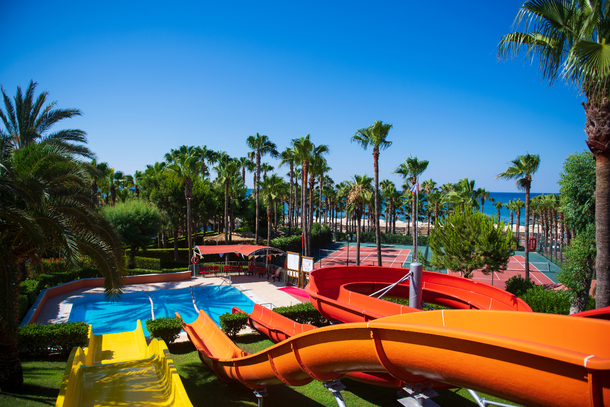 Основен ресторант, 1 а-ла-карт ресторант (турски – 1 безплатно посещение по време на престоя, с предварителна резервация), 2 снек ресторанта, сладкарница, 3 бара, витамин бар (срещу заплащане), дискотека, 2 открити басейна, 3 водни пързалки, СПА център, магазини, паркинг.