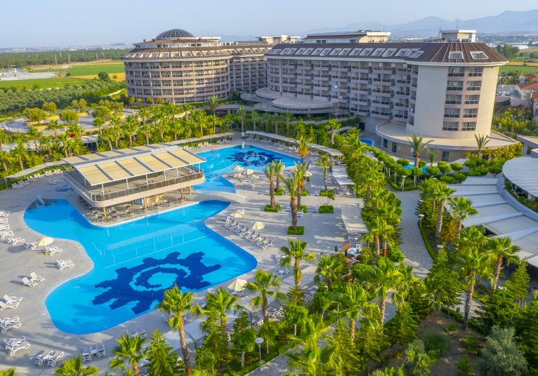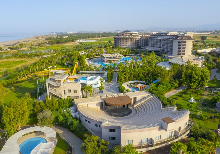 Основен ресторант, 4 а-ла-карт ресторанта (турски, италиански, китайски – 1 безплатно посещение на 1 от ресторантите при минимум 7 нощувки, с предварителна резервация; рибен - срещу заплащане, с предварителна резервация), 2 снек ресторанта, 5 бара, 3 открити и 1 закрит басейн, аквапарк с 6 водни пързалки за възрастни и 2 за възрастни, СПА център, магазини, 1 конферентна зала.