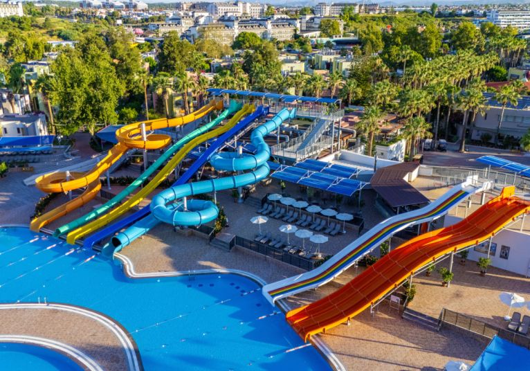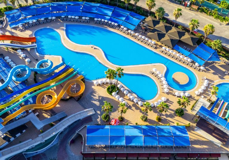 Основен ресторант, 7 а-ла-карт ресторанта (срещу заплащане), бар, 2 открити басейна, аквапарк с 13 водни пързалки, Спа център, сауна, турска баня, масажи, джакузи, безмоторни водни спортове, кану, водни колела. Безплатни услуги: интернет ( в лобито) плажен волейбол, баскетбол, гимнастика, аеробика, тенис на маса, дартс. Платени услуги: билярд, боулинг, видео игри, химическо чистене. За децата: детски басейн, мини клуб, 4 водни пързалки. Плаж: пясъчен, на 450 м. от хотела. Чадъри, шезлонги и плажни кърпи на плажа и при басейна - безплатно.