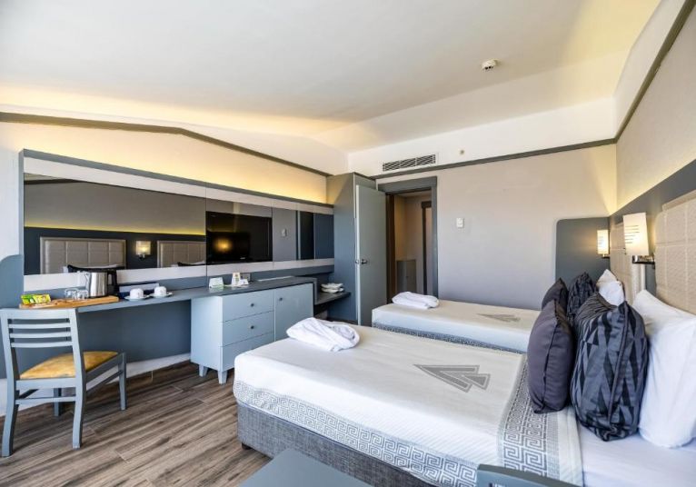 312 Standard Room (изглед суша или страничен изглед море - 24 м2), 4 Handicapped Room (пригодени за хора с ограничена подвижност - 24 м2), 45 Family BunkBed Room (двойно и двуетажно легло, изглед градина - 29 м2), 35 Family Room (2 спални, двойно и две единични легла - 42 м2), 56 Suite Room (две спални, двойно и две единични легла, хол, изглед море – 56 м2).