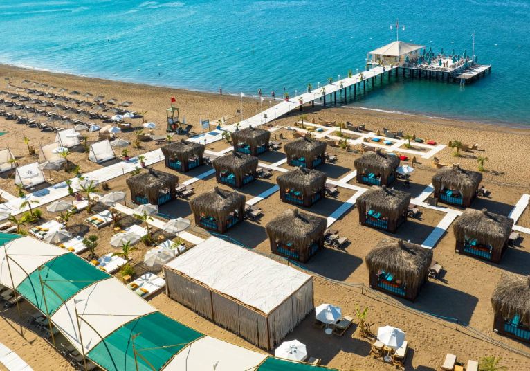 Собствен пясъчен плаж. Има кей. Бар на плажа: безплатно. На плажа и при басейна: чадъри, шезлонги, матраци – безплатно. Плажни кърпи: безплатно. Шатри на плажа – срещу заплащане.