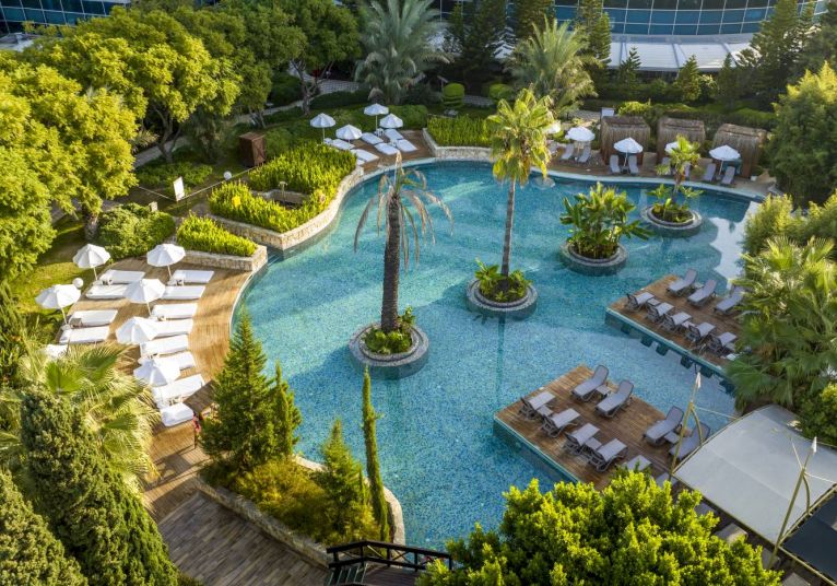 Хотелът се намира на 10 км. от летище Анталия, на брега на морето. Построен с обща площ от 62000м2.