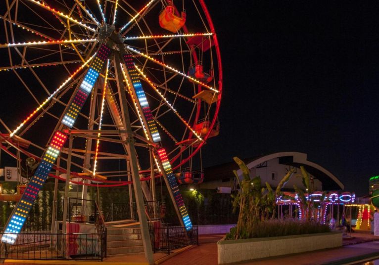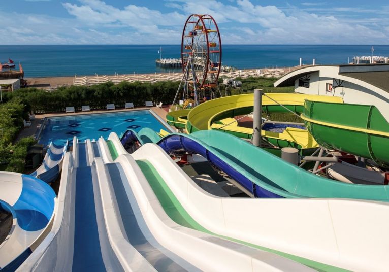 Основен ресторант, 8 а - ла - карт ресторанта (италиански, френски, гръцки, мексикански, далекоизточен, османски, рибен, ресторант месо и вино - с предварителна резервация, при минимум 7 нощувки - безплатно), 5 бара, 3 открити (оновен, релакс и с пързалки) и 1 закрит басейн, дискотека, аквапарк, лунапарк, СПА център, магазини, конферентна зала, Wi-Fi (безплатен).