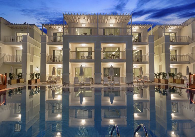 Стаи в основната сграда Main Building: 238 стандартни стаи, от които Standard Room Garden View (изглед суша - 25 м2), Standard Room Side Sea View (изглед частично море - 25 м2), Standard room sea view (изглед директно море - 25 м2), 75 Junior Suite sea view (1 спалня, 1 баня, страничен изглед море - 35 м2), 19 фамилни стаи Family room (2 спални, 1 баня, страничен морски изглед - 45 м2).