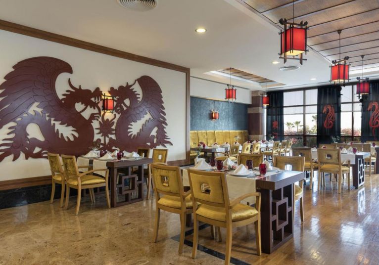 Основен ресторант, 4 a - лa - карт ресторанта (едно безплатно посещение с предварителна резервация по време на престоя), 4 бара, магазини, безплатен интернет в лобито на хотела, открит басейн, закрит басейн, аква парк, 5 водни пързалки.