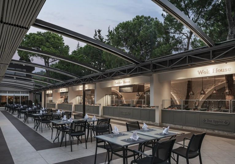 Основен ресторант, 6 а-ла-карт ресторанта (турски, далекоизточен, тепаняки, рибен, италиански, мексикански - срещу заплащане с предварителна резервация), снек бар, сладкарница, станция за сандвичи, 11 бара, витамин бар, 6 открити и 2 закрити басейна, аквапарк, СПА център, дискотека, магазини, 2 конферентни зали.