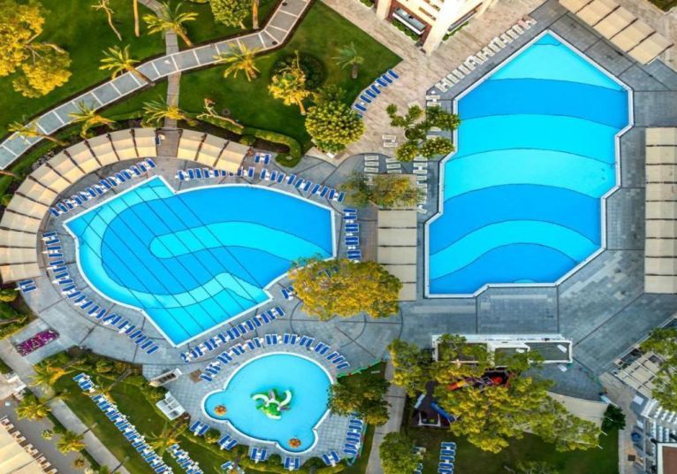 Основната сграда и общите части са реновирани 2020 г., а икономичните вили - през 2005 г. Базата на изхранване е Ultra All inclusive. На разположение на гостите са основен ресторант и 3 а-ла-карт ресторанта, 6 бара, 2 открити и един закрит басейн (релакс, основен и детски), аквапарк с водни пързалки, амфитеатър.