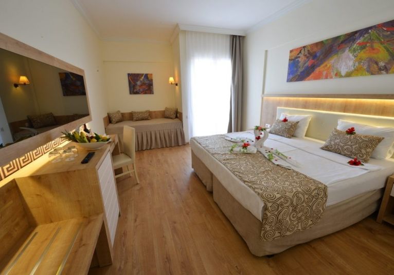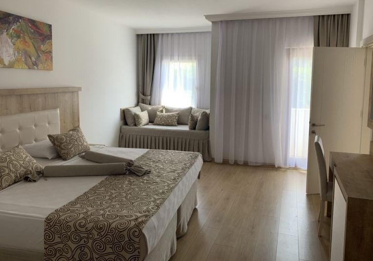 Family Room in Main Building – Фамилна стая в основната сграда – едностайно помещение, предлагаща изглед към земя, път или градина. Състои се от 2 отделения, но без свързваща помежду им врата и има двуетажно легло. Подовата настилка е ламинат, а квадратурата на помещението е 33-35 м². В стаята има баня с душ, огледало, LCD телевизор със сателитни канали, сейф, сешоар, телефон, централен климатик, минибар (само с вода - безплатно), безплатен Wi-Fi, балкон.