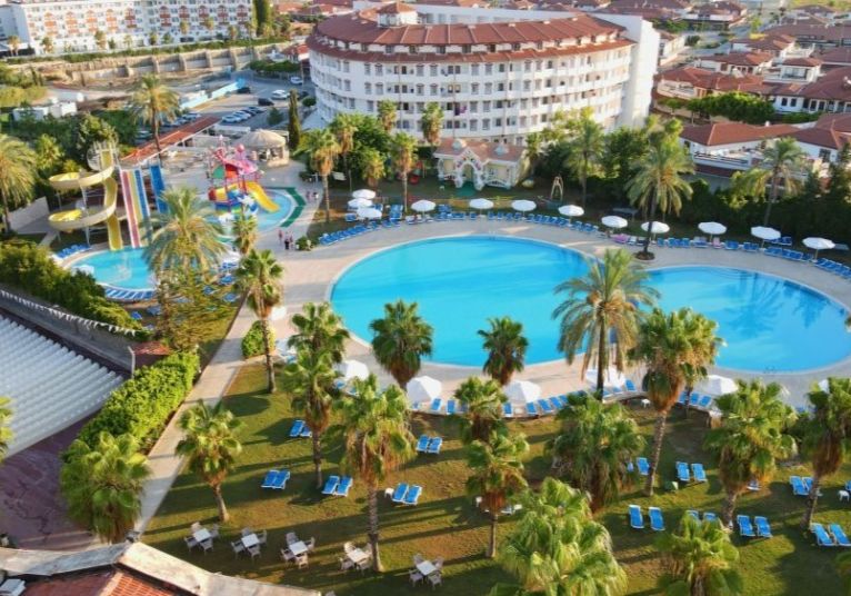 Разположение: Хотелът се намира на 65 км от международното летище в Анталия, на 12 км от Манавгат, на 5 км от Сиде, на брега на морето. Построен е през 1989 г., последната реновация е направена през 2022 г., и разположен върху територия с обща площ от 40 000 м2.