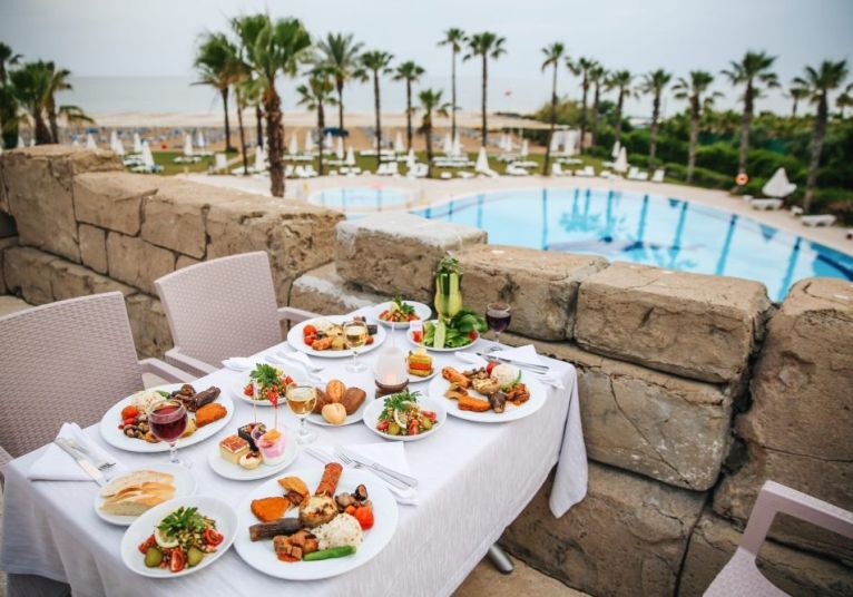 На територията на хотела: Основен ресторант, 2 а-ла карт ресторанта (османски, италиански - с предварителна резервация, за целия престой се позволява 1 посещение на един ресторант – безплатно с предварителна резервация от предходния ден, от 15.06-15.09), лоби бар, бар при басейна, дискотека, снек бар, водни пързалки, открит басейн, закрит басейн, СПА център.