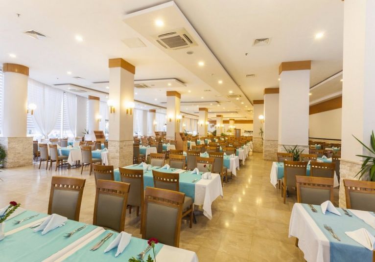 На територията на хотела: Nar Retaurant - Основен ресторант: Максимален капацитет 680 души (вътрешен, климатизиран ресторант за 400 души, тераса ресторантът е за 280 души). A’la Carte ресторанти: Имаме 2 A’la Carte ресторанта. Osman & Fish A’la carte ресторант. Това може да се резервира веднъж на престой безплатно.