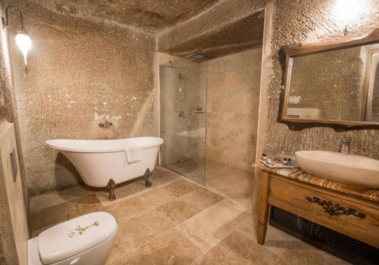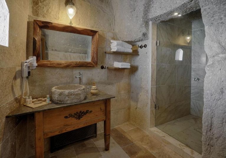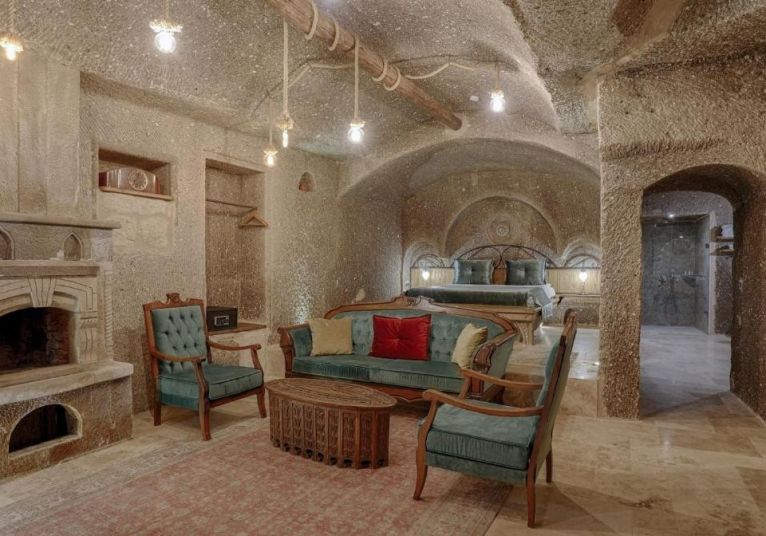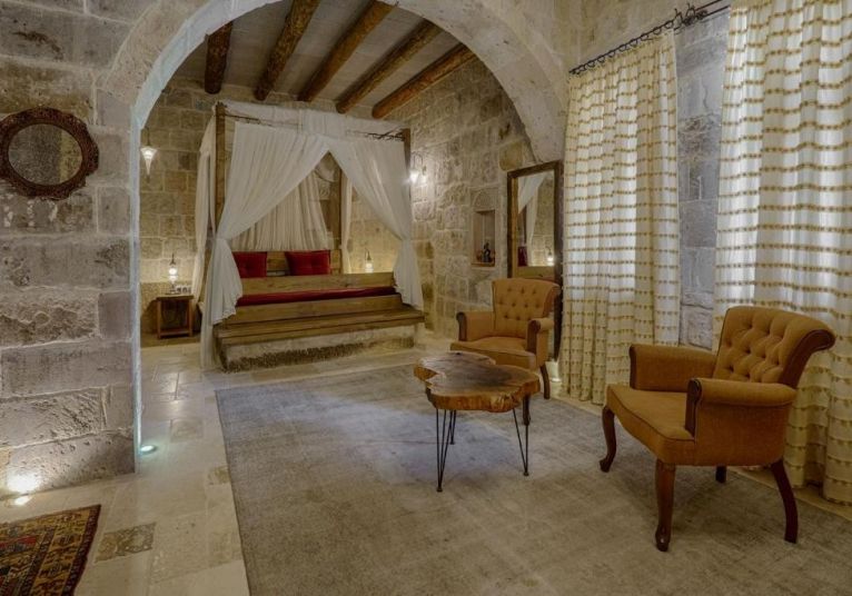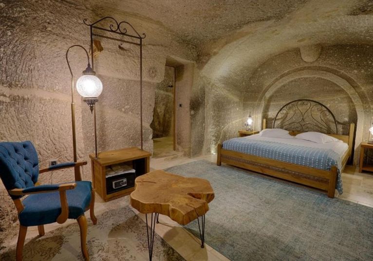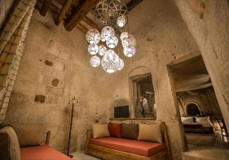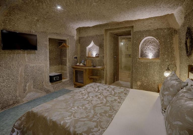 Стаи: Хотелът е визуална наслада. Всяка стая, ъгъл и тераса са декорирани с вкус с артефакти, показващи уникалната история на района. Хотелът разполага 28 уникално проектирани пещерни стаи. Всяка стая разполага с климатик, телевизор, телефон, сейф, минибар, сешоар, самостоятелна баня с душ, някои имат и вана, тоалетни  принадлежности.