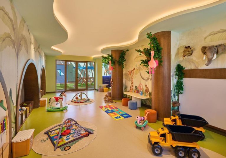 За деца на възраст 4–12 години: Отделни стаи за игра, предназначени за различни възрастови групи, Интерактивни дейности, Забавни спортни дейности за деца, Настолни игри и детски представления, Лего игри, Екипни дейности в стил „Оцеляване“, Рожден ден със специална концепция (платено), Анимационни канали в стаите, Детски бюфет (основен ресторант), Работилници (рисуване, танци, готвене), Детско меню, предлагано във всички ресторанти (с изключение на ресторант Petra +16 Adults Only), Зона за дейности на открито (при подходящо време), Детска площадка, Плувен басейн