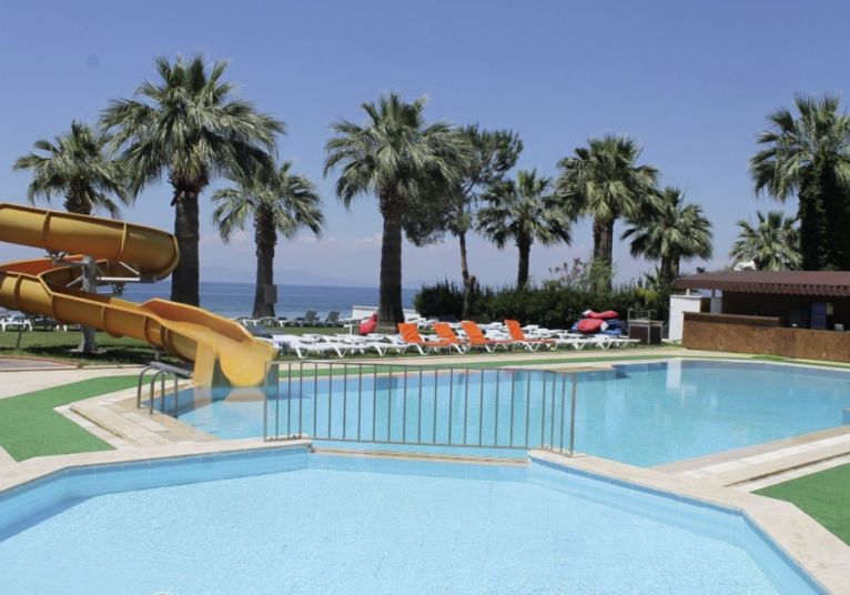 Намира се на 95 км от летище Измир, на 145 км. от летище Милас, на 22 км. от центъра на Кушадасъ, в селището Гюзелчамлъ, на брега на морето. Частично реновиран 2024 г.