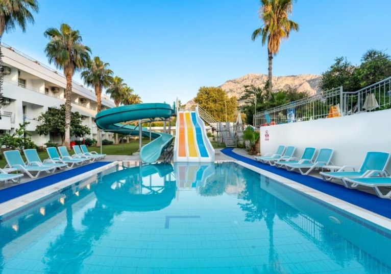 Хотелът е на 40 км от центъра на Анталия. Хотелът разполага със собствен плаж, открити басейни с пързалки за деца и възрастни и ресторант с различни барове. Освен това гостите могат да прекарат времето си в сауната, турската баня или да се насладят на масаж. Хотелът разполага с основна сграда на първа линия до морето и сгради срещу хотела. Центърът на Кемер с неговите много кафенета, ресторанти и магазини е на 20 минути пеша.