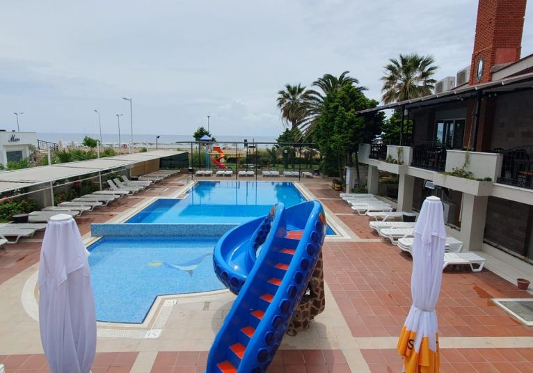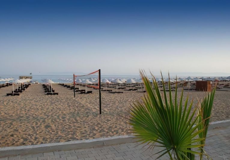 ПЛАЖ: Собствен, пясъчен – чадъри и шезлонги на плажа и при басейна – безплатно.