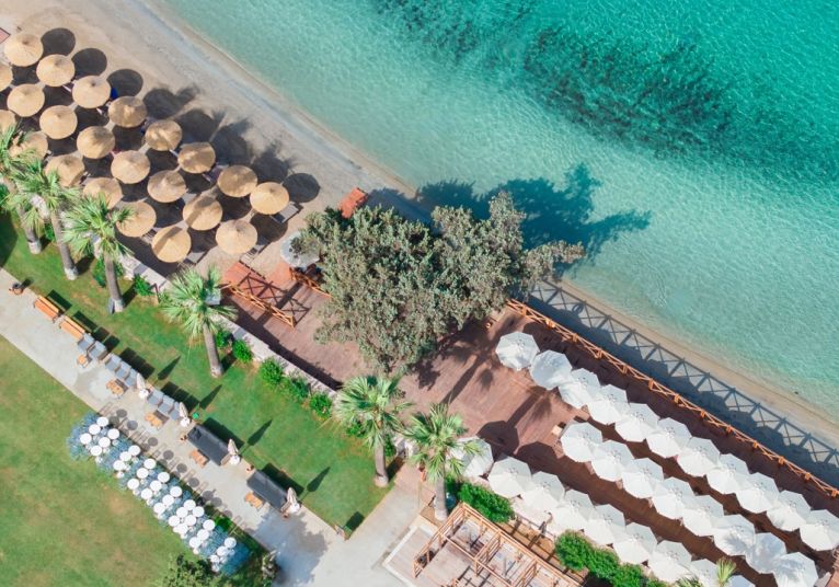 Плаж: Собствен, пясъчeн с дължина 150 м, притежаващ сертификат "Син флаг". Чадъри, шезлонги, матраци на плажа и при басейна – безплатно. Плажни кърпи - безплатно.