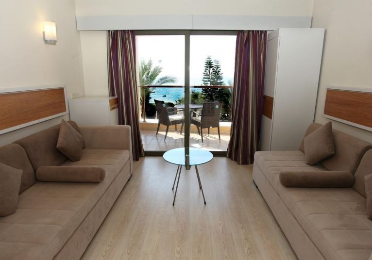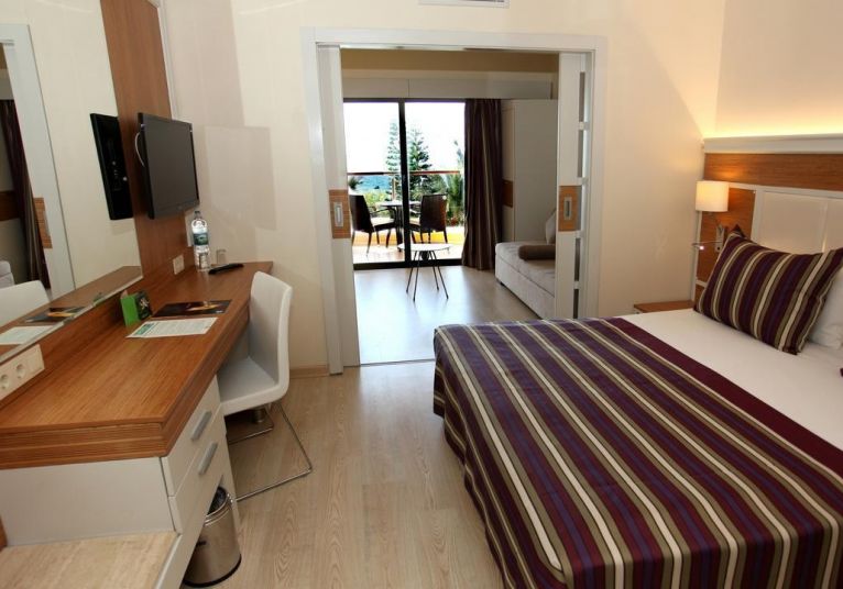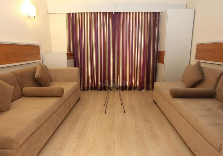 Двойна стая – 28 м2, максимално настаняване 2 възрастни + 1 дете/3 възрастни, спалня или отделни легла, душ/вана, сейф, балкон с изглед към морето.