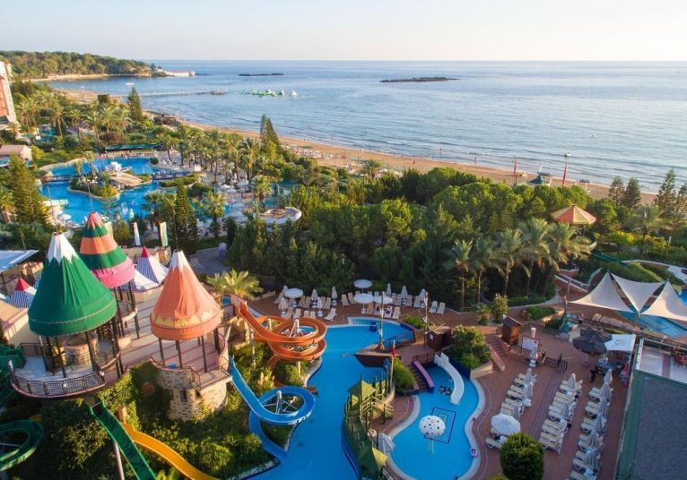 Pegasos Royal 5* се намира в Анталия, срещу залива Инджекум, на брега на морето и предлага чудесен плаж със Син флаг. Алания е само на 30 минути с кола от хотела. Летището на Анталия е на 90 км.